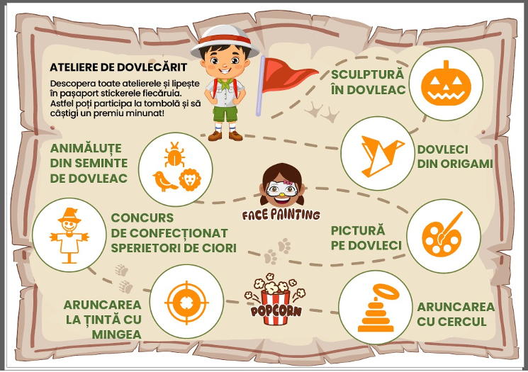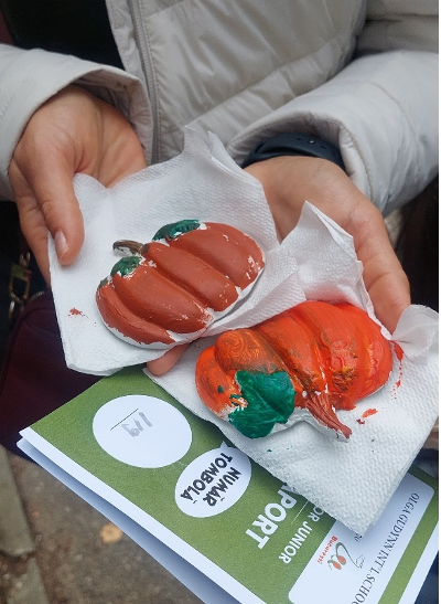 • Pumpkin Painting – Dovlecei colorați și zâmbete mari – La acest atelier vesel, copiii au pictat dovlecei din ipsos în cele mai vesele și îndrăznețe culori. Cu pensule în mână și imaginația în plină desfășurare, fiecare participant și-a creat propriul dovlecel decorativ, unic și plin de personalitate.